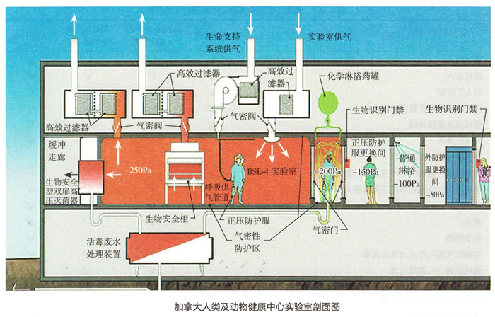 ⊙四級實驗室適用于對人體具有高度的危險性,通過汽溶膠途徑傳播或傳播途徑不明、目前尚無有效疫苗或治療方法的致病微生物或其毒素