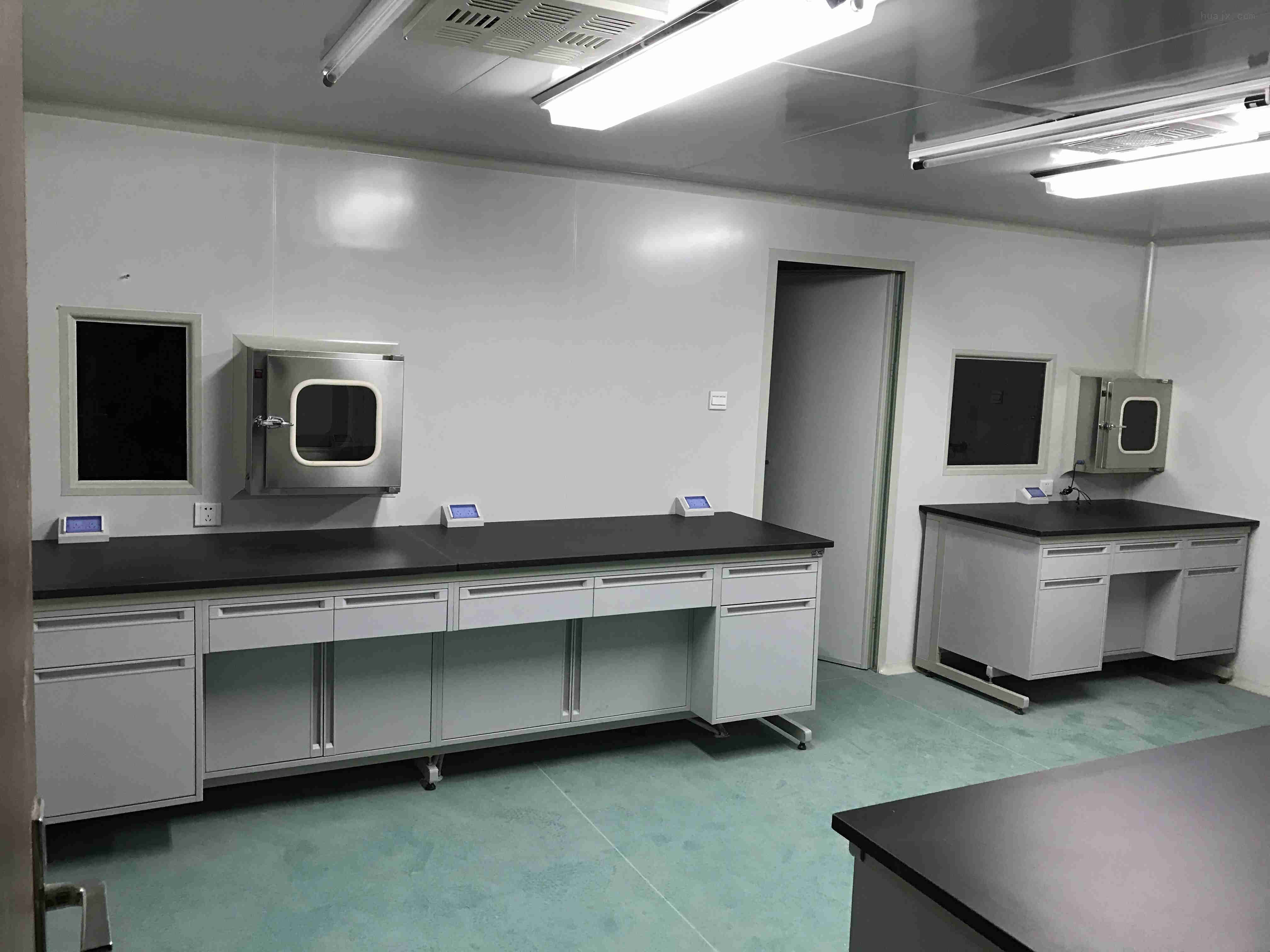 (5)實驗室房間:建筑層高3.5~4.0m,內部凈高2.5~2.6m,技術夾層1.2-1.5m,開間3.2-4.0m,實驗室在面積要求可滿足檢測工作需要為原則,過大不僅浪費,而且會增加氣流組織的困難。